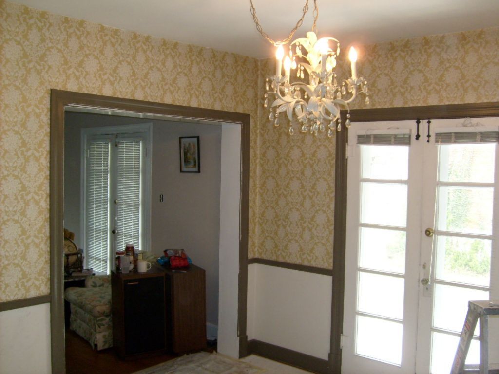 Stipple textured the walls in this 80 yr old dining room plaster walled room. Random pattern with 5" round long bristle brush. Same method as ceiling stippling.