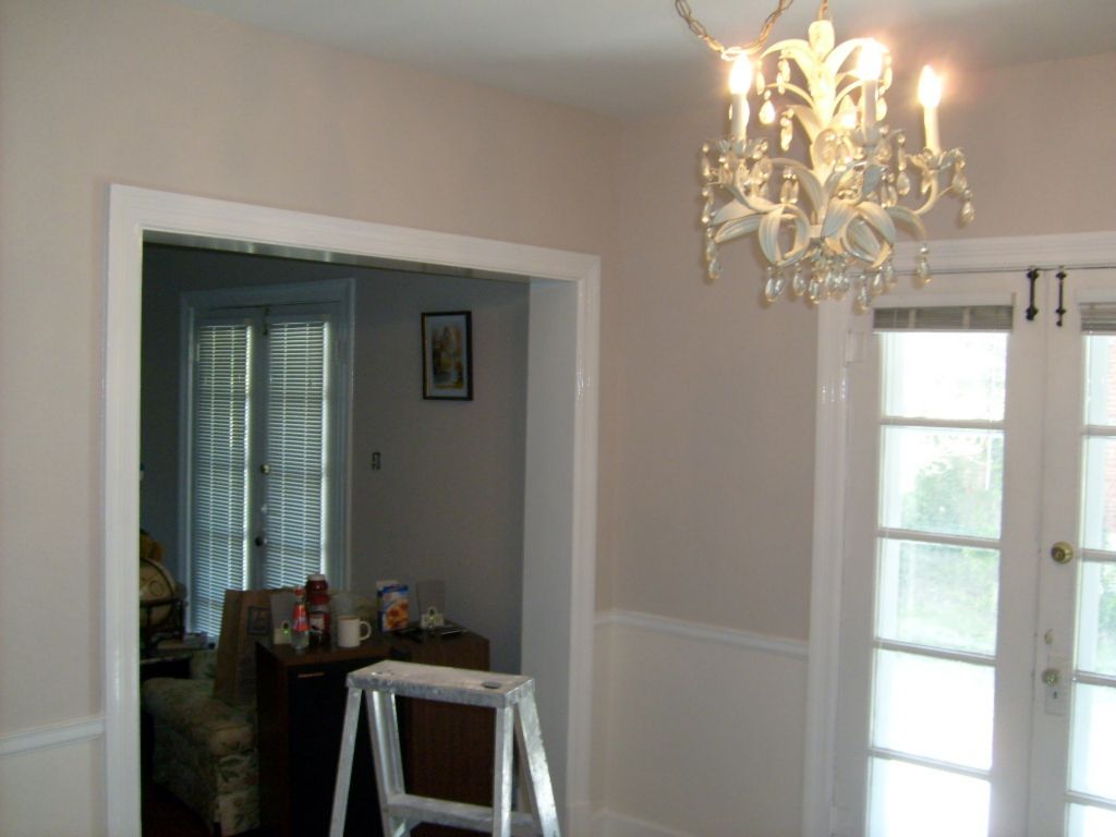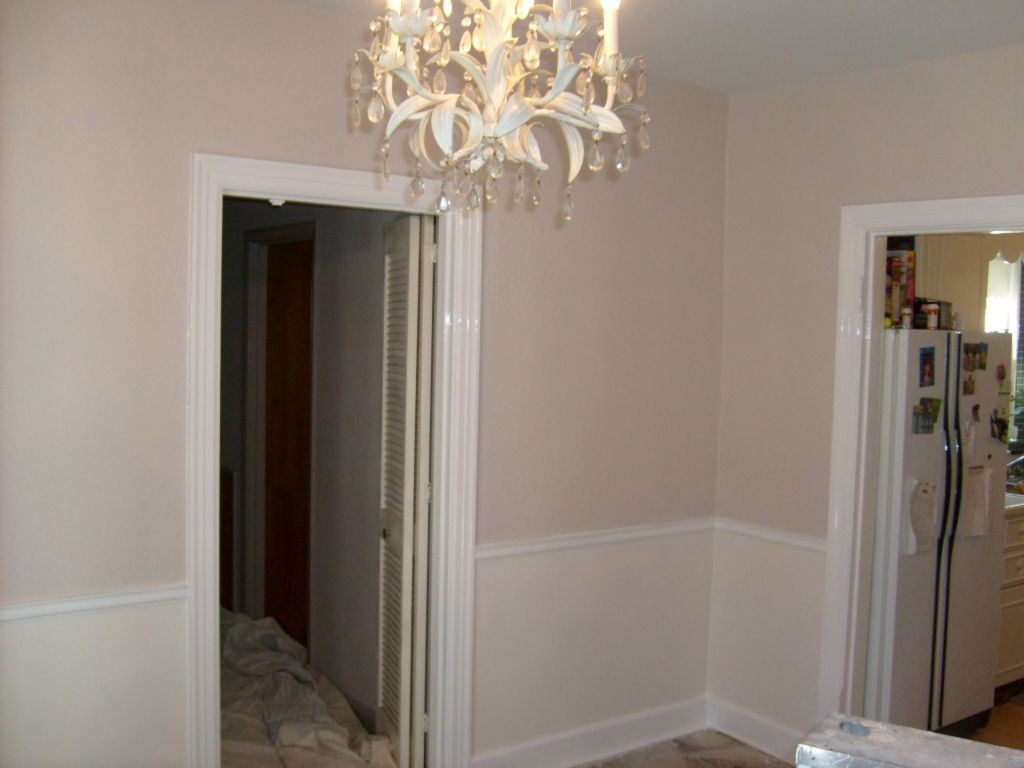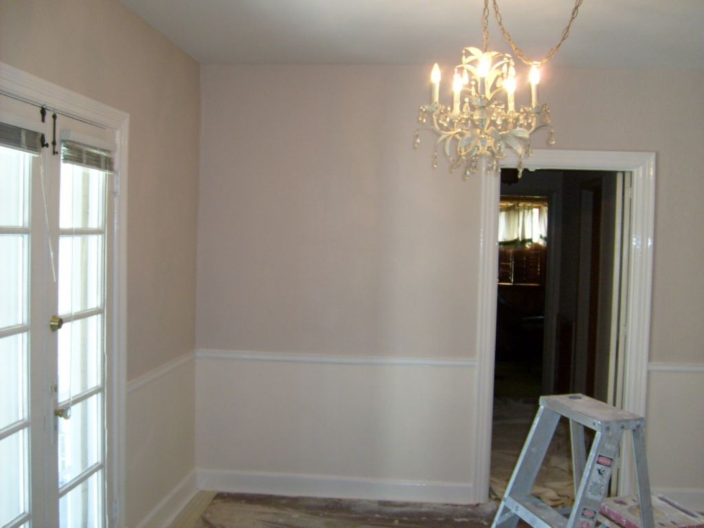 Stipple textured the walls in this 80 yr old dining room plaster walled room. Random pattern with 5" round long bristle brush. Same method as ceiling stippling.